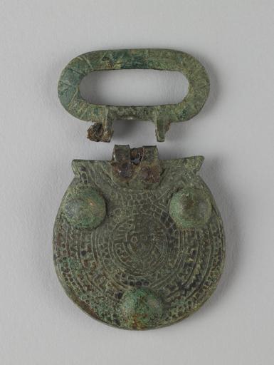 | Keywords: Frankish - Belt Buckle - Walters 542345.jpg This buckle is of a type manufactured in workshops near Paris during the last third of the 6th century It is incised with bands of concentric geometric ornament centering on a human face interpreted variously as Medusa or when surmounted by a cross as Christ In either case the face is an apotropaic device intended to protect the wearer from evil late Other date century 6 Early Medieval bronze cm 9 4 6 1 accession number 54 2345 30842 Joseph Brummer New York Joseph Brummer Sale Parke-Bernet Galleries New York May 12 1949 no 278 Walters Art Museum 1949 by purchase Museum purchase 1949 Early Christian and Byzantine Art Baltimore Museum of Art Baltimore 1947 Jewelry - Ancient to Modern The Walters Art Gallery Baltimore 1979-1980 place of origin Ile-de-France France Walters Art Museum license Medieval metalwork in the Walters Art Museum Ancient Germanic belt buckles Media contributed by the Walters Art Museum needs category review |
