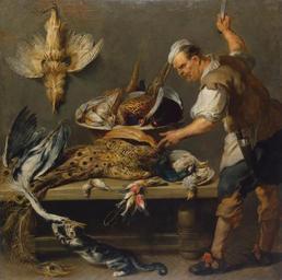 | Keywords: Frans Snyders - Cook at a Kitchen Table with Dead Game.jpg between 1634 1637 Oil on canvas size cm 171 173 Institution Hermitage Museum object history credit line accession number http //www hermitagemuseum org/wps/portal/hermitage/digital-collection/01 +Paintings/46299/ lng en PD-old-100 Kitchen scenes by Frans Snyders Paintings by Frans Snyders in the Hermitage Still life paintings in the Hermitage Genre paintings in the Hermitage 17th-century oil on canvas paintings in Russia Swans in painting Paintings of markets Oil paintings of animals 17th-century paintings of dogs Paintings of men with dogs Dead birds in art Game hunting 17th-century paintings in the Hermitage Pavo cristatus dead |