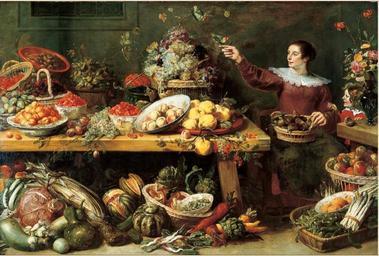 | Keywords: Frans Snyders - Still Life with Fruit and Vegetables.jpg Artwork Creator Frans Snyders and Creator Simon de Vos firsthalf other date century 17 Oil on canvas size cm 173 4 256 5 Norton Simon Museum object history credit line accession number http //www nortonsimon org/collections/browse_artist php name Snyders 2C+Frans PD-old-100 Kitchen scenes by Frans Snyders Fruit and Vegetable Stall Flemish paintings in the Norton Simon Museum Kitchen interiors in Flemish genre paintings Paintings of baskets Customers Paintings of vegetables 1601-1650 paintings Flemish still-life paintings in the Norton Simon Museum Paintings by two artists |