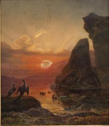 | Keywords: Frants Bøe - Sjøfugler i midnattsol, 1876.jpg Artwork creator Frants Bøe 1876 Oil on canvas 55x48 object history exhibition history credit line accession number place of creation Bergen http //gwpa no/eng/items/22593 PD-old-100 Paintings by Frants Bøe Uploaded with UploadWizard Paintings of the midnight sun Cormorants in art Paintings of birds 1876 paintings in Norway 1876 paintings from Norway Lofoten in art 19th-century landscape paintings of Norway 19th-century oil on canvas paintings of landscapes in Norway |