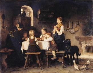 | Keywords: Franz von Defregger - Grace Before Meal.JPG Grace Before Meal Oil on canvas 59 x 73 5 cm scan of painting Museum für bildende Künste Leipzig creator Franz von Defregger 1875 PD-old-auto 1921 Franz von Defregger 1875 paintings Grace prayer in art 19th-century domestic interiors in painting |