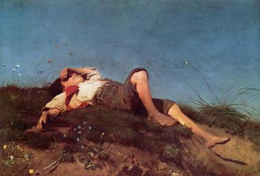 | Keywords: Franz von Lenbach 001.jpg Artwork Creator Franz von Lenbach Title Hirtenknabe A shepherd boy альчик-пастух Un jeune berger 1860 oil canvas cm 107 7 154 4 institution Schack-Galerie http //www sammlungschack de/show_image php which 23 Bayerische Staatsgemäldesammlungen Sammlung Schack München Genre works Yorck Other versions PD-old-100 DEFAULTSORT Lenbach Franz von; Hirtenknabe Paintings by Franz von Lenbach Schack-Galerie Realist paintings in Germany Paintings of boys 1860 Pastoral landscape paintings Sleeping children in art 1860 1860 paintings in Germany 1860s paintings in Bavaria |