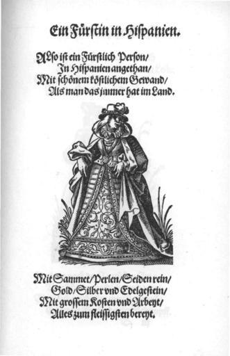 Keywords: Frauen-Trachtenbuch 005.jpg 004 006 Ein Fürstin in Hispanien Nobility of Spain National costumes of Spain Women of Spain in the Frauen-Trachtenbuch 1586