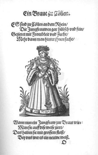 Keywords: Frauen-Trachtenbuch 054.jpg 053 055 Ein Braut zu Cöllen Cologne in the 16th century Brides Paintings by Jost Amman with fur Fur fashion in 1586 Fur clothing of native people of Germany Cologne