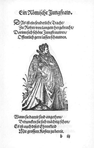 Keywords: Frauen-Trachtenbuch 100.jpg 099 101 Ein Römische Jungfraw People of Rome 1586 Women of Italy in the Frauen-Trachtenbuch 1586 Rome