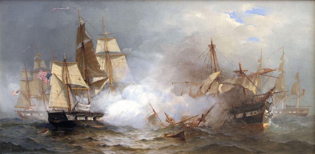 | Keywords: Fred Pansing - Frigate USS „United States“ conquers HMS „Macedonian“.jpg Fred Pansing 1844-1912 Circa 1880 oil canvas in 12 24 object history credit line Signed lower left Fred Pansing accession number http //www vallejogallery com/item php title Frigate_UNITED_STATES_Conquers_H M S _MACEDONIAN category id 235 vallejogallery PD-old-auto-1923 1912 Fred Pansing USS United States ship 1797 HMS Macedonian ship 1810 Naval battles in art 1880s paintings 19th-century sailing ships in paintings |
