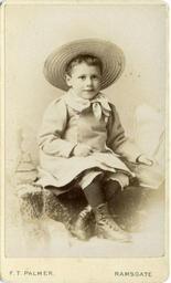 Keywords: Fred T Palmer 003.jpg 19th century carte de visite photo of a boy in a straw hat by Fred T Palmer of Granville Marina Studios Ramsgate Kent The card is undated but the costume is possibly 1870s-1900 ;Points of interest The boy wears a dress and knickers under his coat because very young boys and girls were dressed alike during that period However the coat hat and scarf may perhaps be taken as boyish Scan of original card s 1870 -1900 Fred T Palmer of Ramsgate d 1910 out of copyright The reverse of this carte de visite is here File Fred T Palmer 003a jpg PD-old-70-1923 DEFAULTSORT 1870s-1900; unknown boy Fred T Palmer of Ramsgate Cartes de visite 19th-century portrait photographs of boys at full length Boys' dresses People of Kent Portraits wearing hats People wearing straw hats |