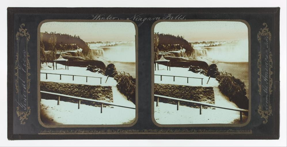 | Keywords: Frederic and William Langenheim - Winter Niagara Falls, General View from the American Side - Google Art Project.jpg Frederic 4165445 and William Langenheim /collection/cooper-hewitt-national-design-museum/artwork/winter-niagara-falls-general-view-from-the-american-side-frederic-and-william-langenheim/6712483/ 59582 Frederic and William Langenheim /artist/frederic-langenheim/6829474/ 6829474 /collection/cooper-hewitt-national-design-museum/ Cooper-Hewitt National Design Museum 3644669 http //www cooperhewitt org/ 3/11/2012 5 40 56 PM /collection/cooper-hewitt-national-design-museum/artwork/winter-niagara-falls-general-view-from-the-american-side-frederic-and-william-langenheim/6712483/ 1854 1856 Glass stereoscopic transparency black tape brush and white and gold paint 6712483 False 1856 3/25/2012 5 35 32 AM 1938-58-53 http //collection cooperhewitt org/view/objects/asitem/id/59582 Gift of Norvin Hewitt Green photography 1850 1860 1856 False 1 9467680608365 Object winter-niagara-falls-general-view-from-the-american-side-frederic-and-william-langenheim Winter Niagara Falls General View from the American Side w 8 3 x 17 5 cm 3 1/4 x 6 7/8 in Glass stereoscopic transparency black tape brush and white and gold paint special url_id 7gGPJ2NoB_tKzA PD-old-70 Photographs in the Cooper “Hewitt Smithsonian Design Museum Winter in Niagara Falls Stereo cards of Niagara Falls Google Art Project works by Frederic and William Langenheim Google Art Project works in Cooper-Hewitt Smithsonian Design Museum |