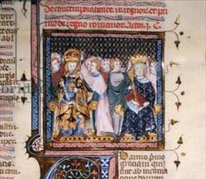 | Keywords: Frederick2-SaintLouis.jpg en Coronation of Frederick II 1194-1250 and of Louis IX 1214-1270 from a Psalter by Pierre Lombard early 15th century de Krönung von Friedrich II 1194-1250 und von Ludwig IX 1214-1270 aus dem Psalter des Pierre Lombard frühes 15 Jahrhundert Psalter of Pierre Lombard Bibliothèque de la Sorbonne Paris www bridgemanart com century 15 Louis IX of France in miniature Frederick II Holy Roman Emperor PD-old | ||||