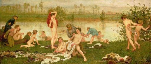 | Keywords: Frederick Walker - The Bathers (1866–67).jpg  Artwork Creator Frederick Walker The Bathers 1866 “1867 Oil on canvas cm 92 7 214 7 Institution Lady Lever Art Gallery accession number LL 3143 http //www bbc co uk/arts/yourpaintings/paintings/the-bathers-102702 BBC Your paintings object history provenanceEvent transfer 1922 Lord Leverhulme's private collection credit line 203785 PD-old-100-1923 1875 Frederick Walker Paintings in the Lady Lever Art Gallery Bathing children in art Paintings of nude boys 1860s paintings |