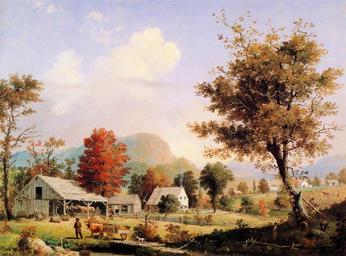Keywords: fredric church forest foliage painting oil on canvas art artistic artistry sky clouds trees nature outside country countryside scenic landscape farm man rural rustic cow cart fall autumn