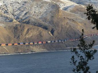Keywords: freight train train transportation kamloops lake british columbia canada winter landscape snow cold season nature scenic frigid beautiful winter magic wintry