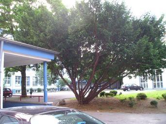 Keywords: Freistehende Eibe auf dem Schulhof Taxus baccata.jpg ;Species Taxus baccata ;Familia Taxaceae 2005 in Cologne Taxus baccata in Germany