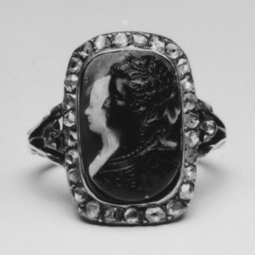 Keywords: French - Cameo Ring with Marie Antoinette and the Dauphin - Walters 571787.jpg The rectangular bezel of this ring is set with a sardonyx cameo featuring portrait busts of Queen Marie Antoinette of France 1755-93 and her son the Dauphin 1785-95 The cameo is surrounded by a border of diamond sparks in silver mounts collets The forked shoulders each enclose a tulip originally set with a crystal and connect to the channeled hoop late Other date century 18 gold silver diamonds sardonyx cm 1 9 1 7 accession number 57 1787 11096 Henry Walters Baltimore date and mode of acquisition unknown Laura F Delano New York date of acquisition unknown by gift Walters Art Museum Gift of Laura F Delano 1947 Jewelry - Ancient to Modern The Walters Art Gallery Baltimore 1979-1980 Objects of Adornment Five Thousand Years of Jewelry from the Walters Art Gallery Baltimore Cooper-Hewitt National Design Museum New York; Chrysler Museum of Art Norfolk; Carnegie Museum of Art Pittsburgh; San Antonio Museum of Art San Antonio; Philbrook Museum of Art Tulsa; Honolulu Academy of Arts Honolulu; New Orleans Museum of Art New Orleans; Milwaukee Art Museum Milwaukee; Minneapolis Institute of Arts Minneapolis; Toledo Museum of Art Toledo; The John and Mable Ringling Museum of Art Sarasota 1984-1987 Jewelry from the Walters Art Museum and the Zucker Family Collection The Walters Art Gallery Baltimore 1987 Bedazzled 5 000 Years of Jewelry from the Walters Art Museum Frist Center for the Visual Arts Nashville; The John and Mable Ringling Museum of Art Sarasota; The Walters Art Museum Baltimore 2006-2009 Bedazzled 5 000 Years of Jewelry El Paso Museum of Art El Paso 2010 place of origin Paris France Walters Art Museum license Cameos Rings Jewellery of France Marie Antoinette of Austria Ring Jewellery in the Walters Art Museum Art of France in the Walters Art Museum |