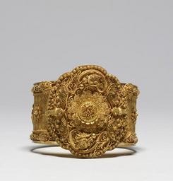 | Keywords: French - Cannetille Ware Bracelet - Walters 572332.jpg  This bracelet is emblematic of Chinese filigree work that was produced for the European market in the mid-19th century It has been mis-attributed as being French cannetille however the style the shape of the medallion the dragon and phoenix motif all indicate Chinese craftsmanship most likely completed in Singapore in the mid- to late- 1800s between 1840 1860 gold cm 5 08 6 35 accession number 57 2332 77180 Mr George Harold Edgell date and mode of acquisition unknown Mrs Jean Walters Delano Edgell date and mode of acquisition unknown Mr Henry Walters Edgell Manchester New Hampshire date and mode of acquisition unknown Mrs Elizabeth Edgell February 9 1986 by gift from her husband Mr Henry Walters Edgell Walters Art Museum Gift of Mrs Elizabeth Edgell 2010 Bedazzled 5 000 Years of Jewelry from the Walters Art Museum Frist Center for the Visual Arts Nashville; The John and Mable Ringling Museum of Art Sarasota; The Walters Art Museum Baltimore 2006-2009 place of origin China or Singapore Walters Art Museum license Gold bracelets Jewellery of France Jewellery in the Walters Art Museum Art of France in the Walters Art Museum |