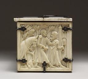 | Keywords: French - Casket with Scenes of Romances - Walters 71264 - Right.jpg This splendid casket is carved with scenes from romances and allegorical literature representing the courtly ideals of love and heroism In the center of the lid knights joust as ladies watch from the balcony; to the left knights lay siege to the Castle of Love the subject of an allegorical battle The remaining scenes on the casket are drawn from well-known stories about Aristotle and Phyllis Tristan and Iseult and tales of the gallant heroic deeds of Gawain Galahad and Lancelot The box may originally have been a courtship gift between 1330 1350 Medieval ivory with modern iron mounts cm 11 8 25 2 12 9 accession number 71 264 5780 Rev John Bowle Wiltshire prior to 1757 Gustavus Brander Christchurch Hampshire prior to 1787 mode of acquisition unknown Francis Douce London prior to 1824 mode of acquisition unknown Sir Samuel Rush Meyrick Goodrich Court Herefordshire prior to 1836 mode of acquisition unknown Lt Col Augustis Meyrick 1848 by inheritance Frédéric Spitzer Paris by purchase Sale Paul Chevallier and Charles Mannheim April 17 1893 no 114 Oscar Hainauer Berlin prior to 1897 mode of acquisition unknown Hector Economos Paris prior to 1913 mode of acquisition unknown Henri Daguerre Paris after 1913 mode of acquisition unknown Arnold Seligmann Rey and Co Paris date and mode of acquisition unknown Henry Walters city Baltimore Walters Art Museum Henry Walters Acquired by Henry Walters 1923 Ivory The Sumptuous Art The Walters Art Gallery Baltimore 1983-1984 The Taste of Maryland Art Collecting in Maryland 1800-1934 The Walters Art Gallery Baltimore 1984 Plants and Flowers in Medieval Manuscripts The Walters Art Gallery Baltimore 1991 Medieval Games of Love and War The Walters Art Gallery Baltimore 1995-1996 Images in Ivory Precious Objects of the Gothic Age The Detroit Institute of Arts Detroit; The Walters Art Gallery Baltimore 1997 Vive la France French Treasures from the Middle Ages to Monet The Walters Art Gallery Baltimore 1999-2000 The Book of Kings Art War and the Morgan Library's Medieval Picture Bible The Walters Art Museum Baltimore; Academy of the Arts Easton Easton; Princeton University Art Museum Princeton; The Mitchell Gallery Annapolis; Williams College Museum of Art Williamstown 2002 Romance of the Rose Visions of Love in Illuminated Medieval Manuscripts The Walters Art Museum Baltimore 2009 place of origin Paris France Walters Art Museum license Casket with Scenes of Romances - Walters 71264 Art of France in the Walters Art Museum Media contributed by the Walters Art Museum needs category review Vive la France French Treasures from the Middle Ages to Monet |