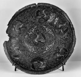 | Keywords: French - Gemellion (Liturgical Plate) with Peacocks - Walters 4471.jpg A gemellion from the Latin geminus meaning twin is one of a pair of basins used to wash hands both at home and during mass Water was poured from the spouted bowl over the hands and was caught in the second bowl placed as a basin below Many gemellions made in the enamel manufacturing center of Limoges were decorated with secular-themed designs This gemellion is adorned with peacocks a symbol of beauty paradise and immortality in the Middle Ages century 13 Medieval champlevé enamel on copper cm 22 5 diam accession number 44 71 5118 Found in the Seine Paris Henri Daguerre Paris by purchase Henry Walters city Baltimore Walters Art Museum Henry Walters Acquired by Henry Walters 1927 place of origin Limoges France Walters Art Museum license Medieval metalwork in the Walters Art Museum Champlevé of Europe Art of France in the Walters Art Museum Media contributed by the Walters Art Museum needs category review Gemellions |