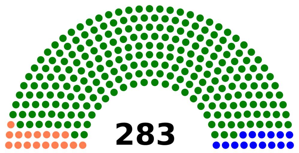 Keywords: French National Assembly 1863.svg FF7F50 Republican 17 seats 008000 Bonapartist 251 seats 0000FF Royalist 15 seats 2016-02-03 own MB298 other versions cc-zero Election apportionment diagrams of French Second Empire