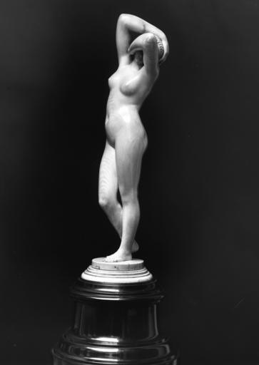 Keywords: French - Phyrne - Walters 71368 - Right Three Quarter.jpg Phyrne stands on an ivory socle mounted on a wooden base Her elaborately braided coiffure is bound with a ribbon and a strand of graduated pearls Turning her head she shields her face with her left forearm Phyrne ambiguously conteracts this gesture of modesty by raising her right arm over her head to display her voluptuous torso to best advantage In the 19th century the famous courtesan was popularized by Jean-Léon Gérôme's masterpiece of 1861 Phyrne before the Tribunal illustrating the titillating moment when the orator Hypereides won his client's acquittal by baring her bosom to the appreciative Athenian judges Having served as the model for Praxiteles and Apelles as well the subject of Phyrne offered artists an occasion for representing an idealized nude Gérôme's figure frequently served as the prototype for representations of Phrne in bronze ivory and silver The anonymous Walters ivory differs from Gèrôme's composition in the position of the figure's arms 2nd half Other date century 19 ivory cm 27 4 accession number 71 368 13264 William T / Henry Walters Collection Baltimore date of acquisition unknown by purchase Walters Art Museum Henry Walters Acquired by William T or Henry Walters The Spectacular Art of Jean-Léon Gérôme Museo Thyssen-Bornemisza Madrid; J Paul Getty Museum Los Angeles; Musee D'Orsay Paris 2010-2011 place of origin France Walters Art Museum license Art of France in the Walters Art Museum Media contributed by the Walters Art Museum needs category review Sculptures in the Walters Art Museum |