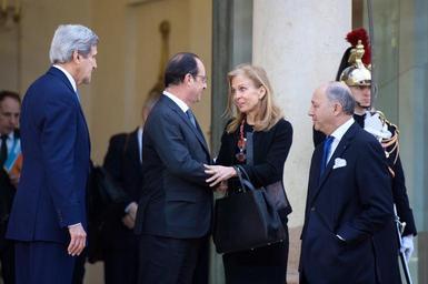 | Keywords: French President Hollande Bids Farewell to Ambassador Hartley (15669838624).jpg en French President François Hollande bids farewell to U S Ambassador to France Jane Hartley after she joined U S Secretary of State John Kerry for a meeting at the Élysée Palace in Paris France on January 16 2015 The Secretary is visiting the French capital to pay homage to the victims of last week's shooting attacks in Paris and to reiterate the support of the United States for the French people and our ongoing commitment to providing any assistance needed 2015-01-16 04 13 46 https //www flickr com/photos/statephotos/15669838624/ U S Department of State other versions U S Department of State http //flickr com/photos/9364837 N06/15669838624 2015-01-17 01 50 30 United States Government Work PD-USGov Uploaded with UploadWizard François Hollande in 2015 John Kerry visit to Paris January 2015 Jane D Hartley Laurent Fabius |