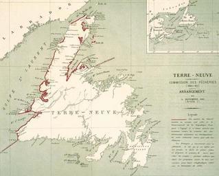 | Keywords: French Shore arrangement, 1885.png  en Map drawn for the French department of fisheries Commission des pêcheries c 1885 following an arrangement regarding activities on Newfoundland's French Shore The sections in red are areas where activities and installations that are not related to fishing are tolerated by the French government provided they do not interfere with the treaty rights of French fishermen to fish as well to dry and process their catch anywhere on the shore and cut wood to build their non-permanent fishing installations Ouside the red-marked areas the exclusive fishing rights guaranteed by the Treaty of Utrecht and subsequent treaties remain intact 2013-11-11 09 16 34 http //www escalenautique qc ca/admin/archives/pdf/french 20shore pdf Map drawn for the French department of fisheries 1885-1886 PD-old-100 Uploaded with UploadWizard Cod fishery in Canada Old maps of Newfoundland |