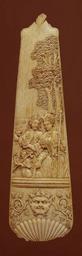 Keywords: French - Tobacco Grater with Pilgrims of Cythera - Walters 71346.jpg On the front Cupid leads a couple of pilgrims of love to the seashore where they will embark for the enchanting island of Cythera that according to mythology is dedicated to Venus The back of the object is fitted with grooves to accommodate the metal grater used for pulverizing tobacco for smoking ca 1780 ivory cm 19 6 accession number 71 346 20344 Paris Henry Walters city Baltimore Walters Art Museum Henry Walters Acquired by Henry Walters 1925 Ivory The Sumptuous Art The Walters Art Gallery Baltimore 1983-1984 place of origin Dieppe France Walters Art Museum license Media contributed by the Walters Art Museum needs category review Art of France in the Walters Art Museum Cupido |