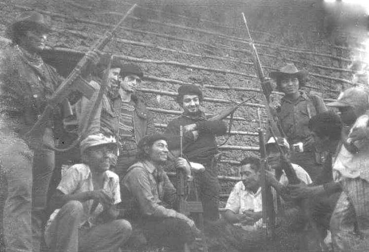 Keywords: blackandwhite monochrome black and white En campaña. De izquierda a derecha, de pie: Carlos Suárez, Dora María Téllez, Anuar Murray Garay, Salvador Bravo, Facundo Picado. Sentados: Hijo del campesino dueño de la casa, Oscar Benavidez Lanuza "El Camaradita", dueño de la casa, Víctor Granados M y otros dos combatientes más. En campaña. De izquierda a derecha, de pie: Carlos Suárez, Dora María Téllez, Anuar Murray Garay, Salvador Bravo, Facundo Picado. Sentados: Hijo del campesino dueño de la casa, Oscar Benavidez Lanuza "El Camaradita", dueño de la casa, Víctor Granados M y otros dos combatientes más. |