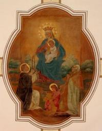 | Keywords: Fresco on ceiling of St. Augustine's Church in Padua.jpg 40 30 32 N 84 47 7 W Fresco on the ceiling of w St Anthony Catholic Church Padua St Anthony Catholic Church in Padua Ohio Padua an unincorporated community in Washington Township Mercer County Ohio Washington Township Mercer County Ohio Mercer County Ohio United States Built in 1869 the church was listed on the National Register of Historic Places as a part of the Land of the Cross-Tipped Churches Cross-Tipped Churches of Ohio Thematic Resources http //1 bp blogspot com/_-vNTK6_ARcE/SIKH68ndLQI/AAAAAAAANYQ/fgmmXZkD7cA/s320/IMG_7458 jpg This photograph found at http //crosstippedchurches blogspot com/2008/07/saint-anthony html this blog post date but mentioned in a book published in 1907 http //www blogger com/profile/10510932136152341753 Russ Martin PD-art Church ceilings in the United States Frescos of Madonna and Child Our Lady of the Rosary Paintings of Madonna and Child in the United States Interior of Saint Anthony Catholic Church Padua Ohio Other people's pictures by User Nyttend |
