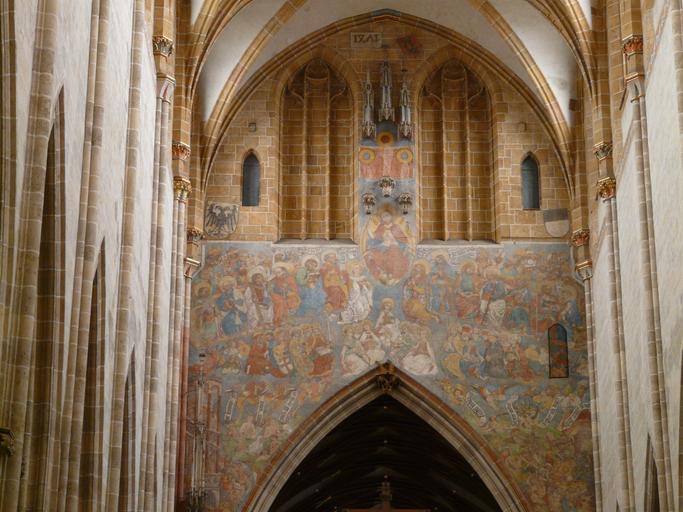 Keywords: fresco quire arch interior building architecture gothic the most recent court ulm cathedral mural door secret door opening ulm iconography late middle ages all saints iconography