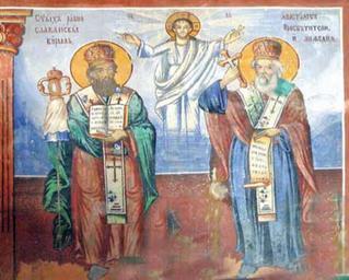 | Keywords: Freska na Sv. Kiril i Metodij od Sv. Nikola Gradešnički.jpg  mk Г адешница ц ква Св  икола св Ки ил и св  етодија севе ен ѕид http //www kalamus com mk/pdf_spisanija/patrimonium_4/24_1 20 20016_4 20Spisanie 202011 20Nikola pdf THE IMAGES OF THE HOLY SLAV TEACHERS ST CYRIL AND ST METHODIUS IN THE FRESCO PAINTING OF THE 19th CENTURY OF PELAGONIJA MARIOVO AND DEMIR HISAR Author 1882 PD-Macedonia Frescos of Saints Cyril and Methodius Frescos in the Republic of Macedonia St Nicholas Church Gradešnica |