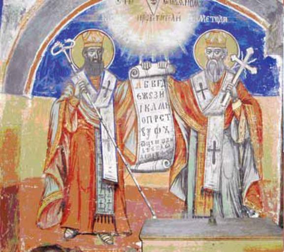 | Keywords: Freska na Sv. Kiril i Metodij od Sv. Nikola Babinski.jpg  mk Бабино ц ква Св  икола св Ки ил и св  етодија олта ен п осто јужен ѕид http //www kalamus com mk/pdf_spisanija/patrimonium_4/24_1 20 20016_4 20Spisanie 202011 20Nikola pdf THE IMAGES OF THE HOLY SLAV TEACHERS ST CYRIL AND ST METHODIUS IN THE FRESCO PAINTING OF THE 19th CENTURY OF PELAGONIJA MARIOVO AND DEMIR HISAR Josif and Jakov Radevič 1888 PD-Macedonia Frescos of Saints Cyril and Methodius Frescos in the Republic of Macedonia St Nicholas Church Babino |