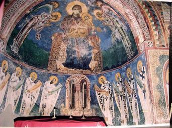 | Keywords: Freska vo Sv. Georgij vo Kurbinovo 01.JPG mk Ф ески во Ц квата Св Ѓо ѓи во Ку бинскиот анасти во Ку биново П еспа en Frescos in St Geoge Church in Kurbinovo Prespa Macedonia de Freskos in Georgskirche in Kurbinovo Mazedonien ru Ку биново Це ковь св Гео гия Ку биново акедония http //sankire narod ru/Kurbinovo html Ку биново це ковь св Гео гия 1191г 2004-01-27 02 11 57 author PD-Macedonia PD-Art Paintings in St George's Church Kurbinovo | ||||