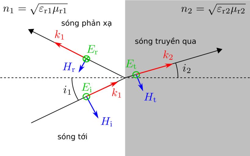 | Keywords: Fresnel-equations-sketch-ET-vi.svg Fresnel equations sketch of incident reflected and transmitted waves for transverse magnetical polarisation Are drawn and labelled electric fields E and magnetic fields B as well as angles with the normal wave numbers and refracting indices Coefficients de Fresnel schéma des ondes incidente réfléchie et transmise pour la polarisation magnétique transverse Sont indiqués les champs électriques E et magnétiques B ainsi que les angles d'incidence et de réfraction les nombres d'onde et les indices de réfractions Fresnelsche Formeln Skizze der einfallenden reflektierten und transmittierten Wälen für eine parallele Polarisation Wureden gezeichnet die elektrische E and magnetische B Felder Winkel Wälennummer und Brechungsindexe Translated from Image Fresnel-equations-sketch-ET-fr svg Brachycerophilia User Tttrung 2008-06-02 2008-10-09 Fresnel equations diagrams Created with Inkscape |