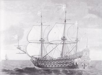 | Keywords: Friderich (ship, 1649).jpg The galleon Friderich was named after king Frederick III of Denmark and it was delivered to the Danish Navy in 1649 It was built at Neustadt under the supervision of admiral Christopher Lindenow The admiral commissioned this painting which was placed at the family's castle at Gavnø where it still is Because of its ornaments - referring to the Order of the Elephant - it was also called Den hvide Elefant The White Elephant This copy has been cropped see the other versions for the full painting Orlogsskibet Friderich var opkaldt efter Frederik III og indgik i den danske flåde i 1649 Det blev bygget i Neustadt under opsyn af admiral Christopher Lindenow Admiralen fik udført dette billede der blev ophængt på familiens slot Gavnø hvor det stadig hænger På grund af sin udsmykning - der refererer til Elefantordenen - blev skibet også omtalt som Den hvide Elefant Denne gengivelse er beskåret i begge sider sider Se andre versioner for det fulde billede 1650 oil canvas cm 300 350 Privately owned at Gavnø Castle place of discovery object history exhibition history credit line accession number place of creation Scanned from old book thumb left 100px Full painting Hanne Poulsen Danske Skibsportrætmalere København 1985 ISBN 87-7248-004-1 PD-old-100-1923 Naval ships of Denmark in art Friderich Galleons in art Gavnø Slot |