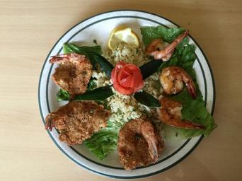 Keywords: fried shrimp platter shrimp fried food meal seafood shellfish plate platter cuisine lemon appetizer restaurant dish delicious jumbo