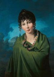 Keywords: Friedrich Bury - Bildnis der Gräfin Luise von Voß (1810).jpg Artwork Creator Friedrich Bury Die Dargestellte ist 1780 geboren als Freiin von Berg auf Wolfsleben vermählt 1800 mit Graf August Ernst von Voss auf Groß-Gliewitz in Mecklenburg gest 1832 Wrapped in a cashmere shawl her manor glimpsed in the background Countess Luise von Voss's 1780-1832 presentation in semi-grisaille recalls early Ingres 1810 Oil on canvas size cm 76 56 Schloss Bellevue w Bellevue Palace Germany Bellevue Palace Ð”Ð²Ð¾Ñ ÐµÑ† Бельвю 02532092 object history 1955 erworben für Gemäldegalerie Berlin zeitweilig 1968 Nationalgalerie Seit 1992 Leihgabe im Schloss Bellevue Berlin credit line accession number GG 4/55 http //en gallerix ru/storeroom/2709789318/N/2910/ gallerix ru <gallery>Countess Luise von Voss jpg</gallery> PD-old-100 DEFAULTSORT Bury Friedrich; Portrait female Luise von Vos 1810; Schloss Bellevue Friedrich Bury Paintings in Schloss Bellevue Voss aristocratic family 1810 oil on canvas paintings Portrait 1810 paintings in Germany 1810 portrait paintings from Germany 1780 births 1832 deaths 1810s oil portraits of women at half length 1810 19th-century oil on canvas paintings in Germany 19th-century portrait paintings in Germany 1810 19th-century women of Germany 1810 Classicist paintings of women Curly hair in art female Green clothing in art female 1810 Portraits of women with landscape Portraits with night landscape Portraits with shawls 1810