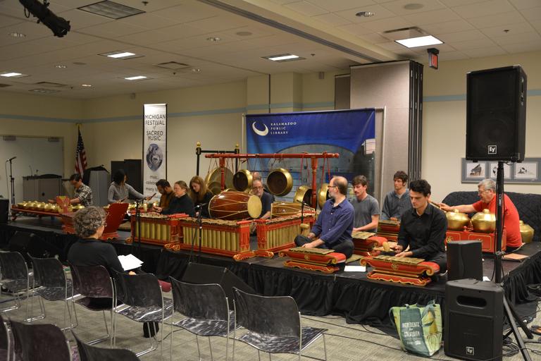 Keywords: kalamazoo public library kalamazoopubliclibrary kalamazoo friends gamelan live concert liveconcert room hall indoor auditorium In partnership with the Michigan Festival of Sacred Music, Kalamazoo Public Library hosted an afternoon of Gamelan music, the traditional ensemble music of Java and Bali in Indonesia, made up predominantly of percussive instruments on Saturday, 29 October 2016. Chicago’s Friends of the Gamelan, Inc. is a not-for-profit corporation dedicated to the instruction and performance of gamelan music. Photo credit: Pete Koenig www.kpl.gov In partnership with the Michigan Festival of Sacred Music, Kalamazoo Public Library hosted an afternoon of Gamelan music, the traditional ensemble music of Java and Bali in Indonesia, made up predominantly of percussive instruments on Saturday, 29 October 2016. Chicago’s Friends of the Gamelan, Inc. is a not-for-profit corporation dedicated to the instruction and performance of gamelan music. Photo credit: Pete Koenig www.kpl.gov |
