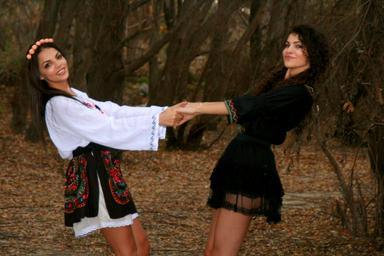 Keywords: friendship girl autumn play forest traditional costume beauty