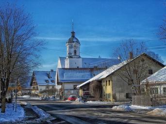 Keywords: friesenried germany bavaria town urban winter snow street hdr church building trees outside scenic