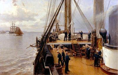 | Keywords: Frigate Svetlana.jpg en Alexander Karlovich Beggrov 1841-1914 On Deck Of The Frigate Svetlana Александ Ка лович Бегг ов 1841-1914 а палубе ф егата «Светлана» Location en The Central Naval Museum St -Petersburg Russia Цент альный военно-мо ской музей Санкт-Пете бу г Россия Dimensions 100x153 cm <br> Web source http //www rosizo ru/eng/japan/i/naval/06 html <br> Technique Oil on canvas 1884 creator Alexander Karlovich Beggrov PD-old-100 Svetlana ship 1858 Alexander Karlovich Beggrov Paintings in the Central Naval Museum |