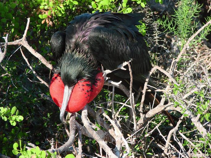 Keywords: frigatebird bird seabird puffed up animal beak galapagos islands