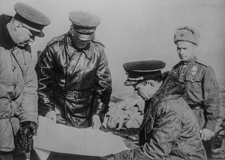 | Keywords: vårslipp 2015 vårslipp2015 2. verdenskrig 2verdenskrig andre verdenskrig andreverdenskrig 00 ukjent 00ukjent finnmark norge blackandwhite monochrome people black and white Bildet viser øverstkommanderende (til venstre) i de Sovjetiske militære styrker som gjennomførte Frigjøringen av Nord-Norge. (Billedtekst både på russisk og på engelsk) Arkivreferanse: NTBs krigsarkiv i Riksarkivet (RA/PA-1209/U/Uj/L0219g) Bildet viser øverstkommanderende (til venstre) i de Sovjetiske militære styrker som gjennomførte Frigjøringen av Nord-Norge. (Billedtekst både på russisk og på engelsk) Arkivreferanse: NTBs krigsarkiv i Riksarkivet (RA/PA-1209/U/Uj/L0219g) |