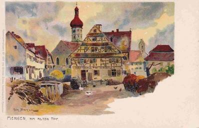 Keywords: Fritz Bergen AK Mengen.jpg Mengen Am Alten Hof Verlag Ottmar Zieher München Künstlerpostkarte Nr 1526 http //www eurocards de/katalog/kuenstler_bergen1 html ~ 1900 Creator Fritz Bergen PD-old-auto-1923 1941 Fritz Bergen Mengen Our Lady Church Mengen Timber framing in Mengen Ottmar Zieher