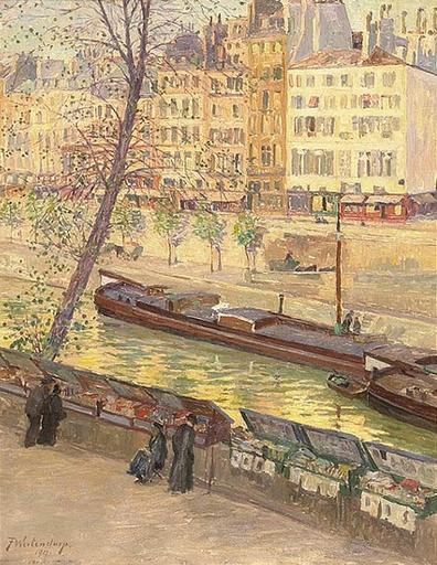 | Keywords: Fritz Westendorp Pariser Büchermarkt.jpg  Oil canvas cm 56 44 object history credit line accession number http //www auktionshaus-wendl de/ PD-Art barges in Paris Bouquinistes in Paris 1911 paintings Apricot Paintings of the Seine in Paris Fritz Westendorp Booksellers in art |