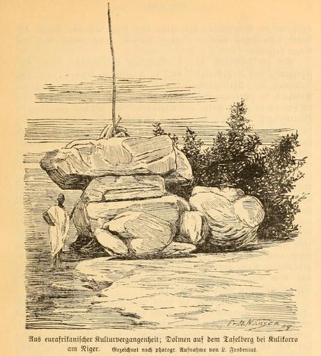| Keywords: FROBENIUS(1911) Fig02 Niger - Dolmen auf dem Tafelberg bei Kulikorro.jpg Dolmen auf dem Tafelberg bei Kulikorro am Niger - from Expeditionsbericht der Zweiten Deutschen Inner-Afrika-Expedition 1907-09 Auf dem wege nach Atlantis https //archive org/details/aufdemwegenachat00leof Digitalisat Internet Archive Open Library Book contributor Library of Congress Leo Frobenius Ethnologe published 1911 https //archive org/about/terms php Internet Archive Book Images PD-old-70-1923 DEFAULTSORT 1911 Frobenius 02 Auf dem Wege nach Atlantis 1911 by FROBENIUS Uploaded with VicuñaUploader Koulikoro Megaliths in Mali |