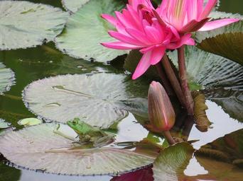 Keywords: frog pond water green animal amphibian nature aquatic lily water lily wildlife natural wild creature