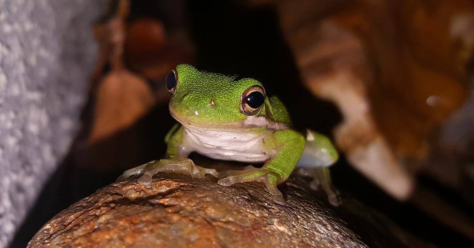 Keywords: frog tree frog american green tree frog croak croaking amphibian green close up night nocturnal animal nature wildlife creature sitting staring looking fauna hyla cinerea