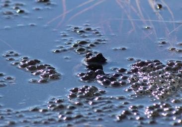 Keywords: frog water bubble nature outside macro close-up barely seen