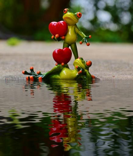 Keywords: frogs pair love water bank reflection valentine's day pose heart funny frog animal fun fig cute green sweet figures adorable
