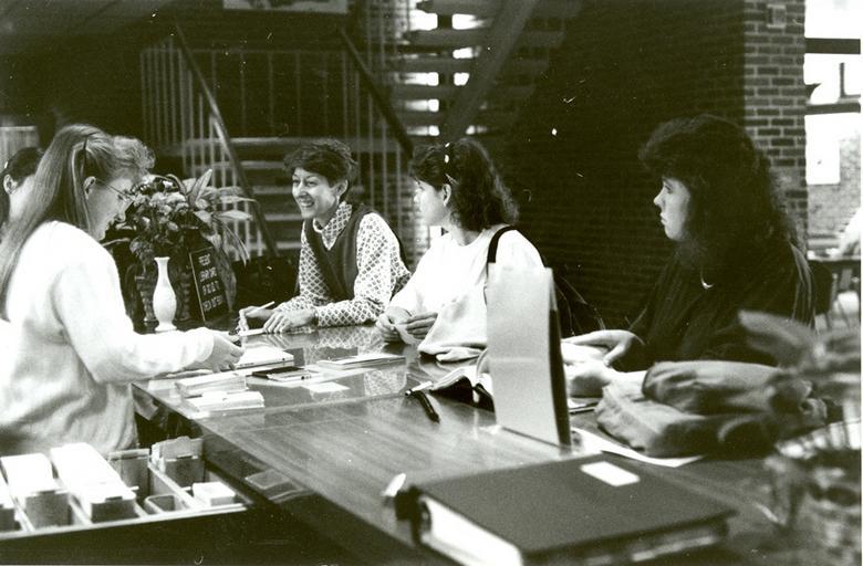 Keywords: goshen college goshencollege good library goodlibrary circulation desk circulationdesk library students Citation: Goshen College. Photographs. Library, 1990-91. V-4-11 Box 46 Folder 62. Mennonite Church USA Archives - Goshen. Goshen, Indiana. Citation: Goshen College. Photographs. Library, 1990-91. V-4-11 Box 46 Folder 62. Mennonite Church USA Archives - Goshen. Goshen, Indiana.